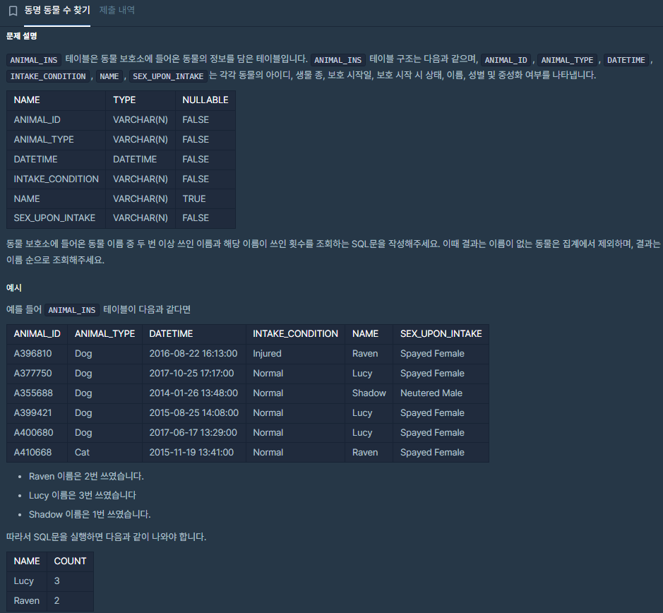 | [프로그래머스][Lv.2] 이름에 el이 들어가는 동물 찾기 (0) | 2025.01.12 |